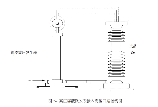 � �(dāng)需要精密測量被試品的泄漏電流時,�(yīng)在高壓回路中串接高壓屏蔽微安�,見圖7a�