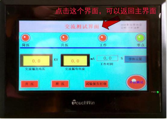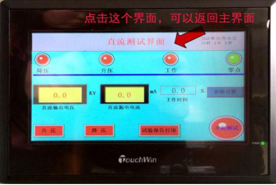 3:參�(shù)設定一般只需設定,輸出電�,泄漏電流,通電時間三個參�(shù)即可,其他不要改,設定好參數(shù)�,點擊“返回”到主界面,再點擊一下“測試”按�,界面“工作”指示燈為紅色并閃爍,升壓指示燈�,至額定電壓,“升壓”停止并開始計時-計時完成-降壓-主回路斷�。整個耐壓過程將按要求自動完成。并記錄所有參�(shù),點擊“試驗報告打印”將打印測試結果�
