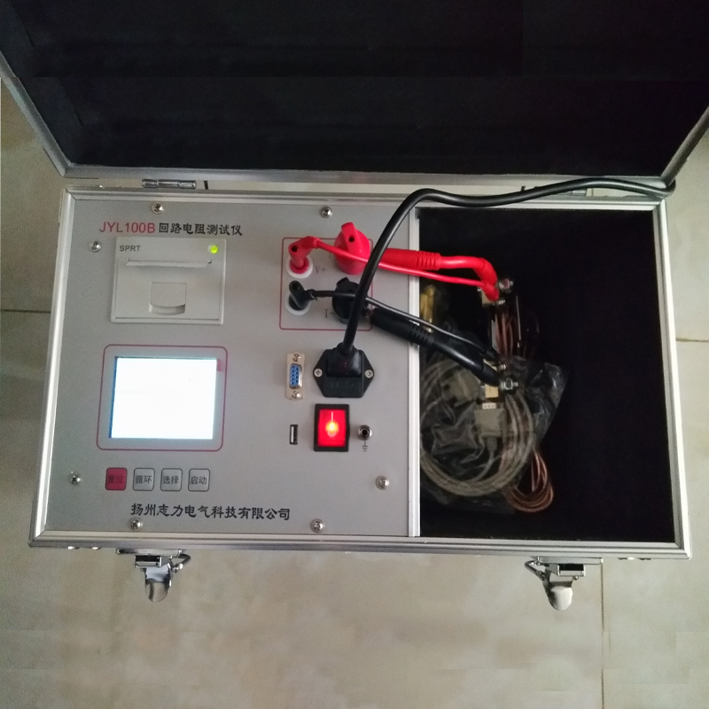 JYL100B回路電阻測試儀儀器配備微型打印機、RS232和USB接口,可和計算機通訊以及U盤存儲,測試電流:50A, 100A,量程:0~100mΩ(50A) 0~50mΩ(100A),分辨率:最小0.1μΩ,精度:±(0.5%±2個字),功率:1000W,工作方式:連續(xù)測量。