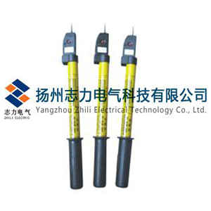 ZYD型聲光高壓直流驗(yàn)電器其指示器與操作桿都應(yīng)用交流驗(yàn)電器的結(jié)構(gòu)與工藝,所不同之處在于直流驗(yàn)電器操作桿的首節(jié)絕緣桿內(nèi)增設(shè)了高壓限流元件及接地引下端口。