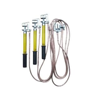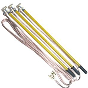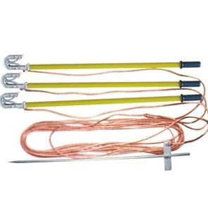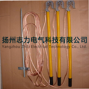 XJ-10型10KV(戶外線路)短路接地線軟銅線規(guī)格:25mm2 3根×1.5M+1根×15M(合相式),絕緣操作桿:3根×1000mm。